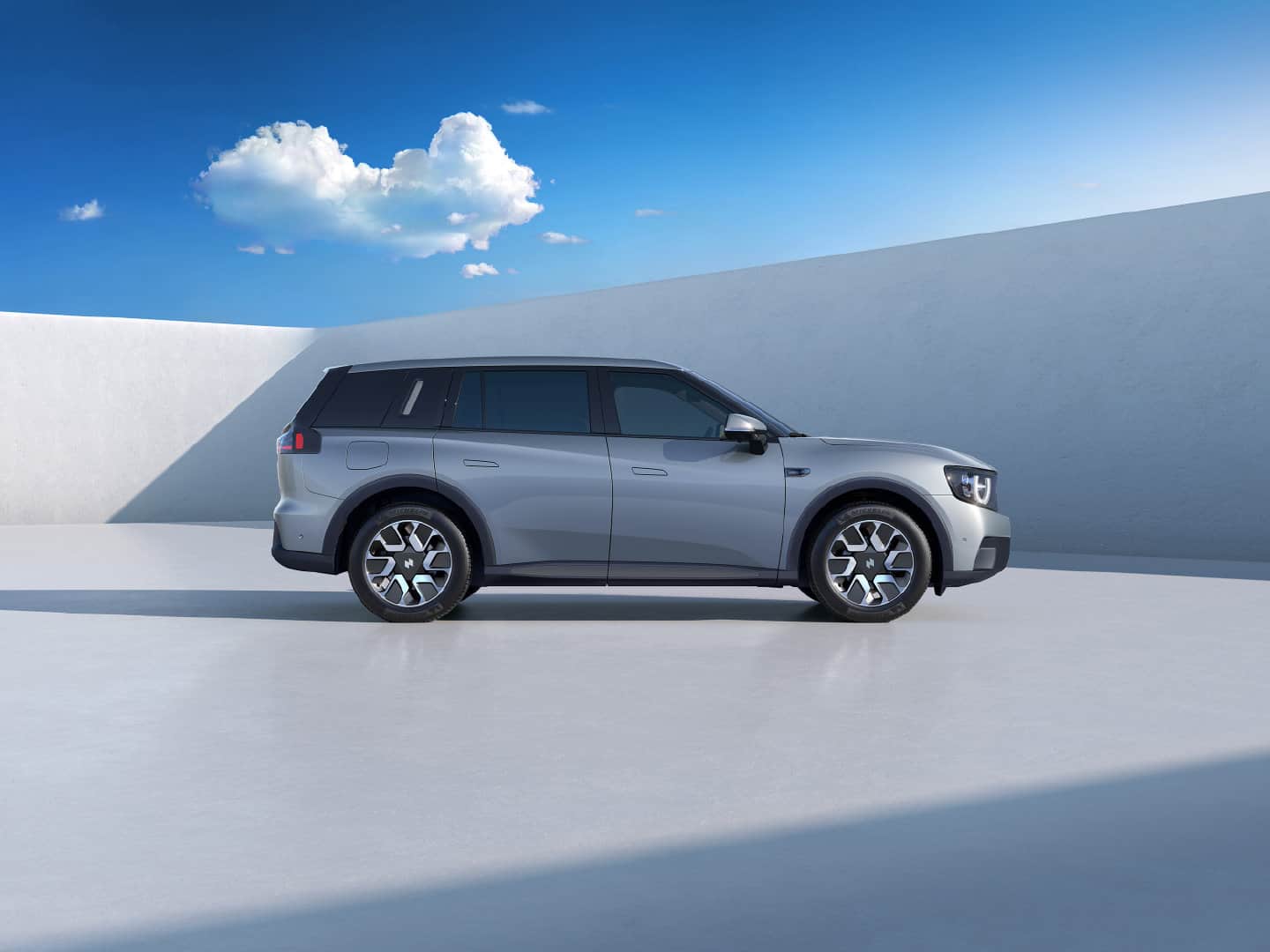 牛创自游家 NV 看起来不大,但两个 LED 大灯目光灼灼,三围到达 4915*1962*1745mm,轴距也来到了 2910mm,算是大尺度 SUV。