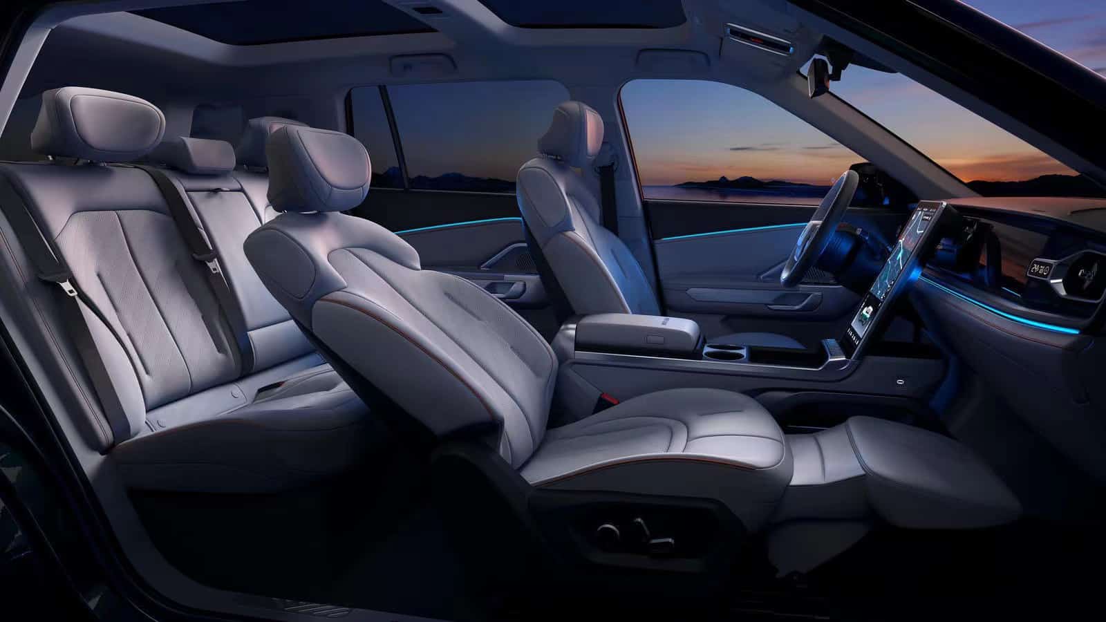内饰里,最有目共睹的是 15.6 英寸的中心悬浮屏,屏幕内置了触控反应,内置 6 颗用于完成 RealTouch 触觉反应的线性微动马达。基本上,你看不到物理的按钮。选用精约的两幅式多功能方向盘,也是为了投合年青集体。自游家 NV 安置了十分多的充电口,包含前排两个 15 W 无线充电、全车总共 4 个 Type-C 接口,前排两个支撑数据传输,功率为 10 W,后排两个支撑 18 W 快充、以及 3 个 12V 点烟器接口。